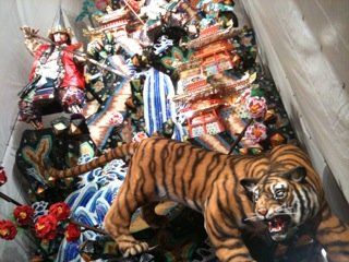 この他にも、どこの流れか忘れたけども、桃太郎をモチーフにした飾りがあって、キジの人形が