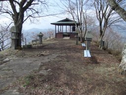 ようやくたどりついた葛尾城。石垣もあり、すごすぎて画デジカメを持つ手も震える険しい堀切あり、切岸あり、本丸あり、村上義清の旗あり。そういう山頂のさまざまな技巧よりもそもそも高度が高すぎて実に攻める気の失せそうな城であった。