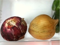 まだ、ほとんど何も入っていない大型冷蔵庫にそっと赤い玉ねぎを並べてみる。