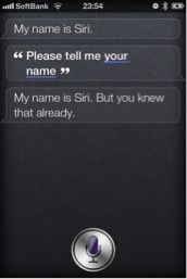 夕食後にアイフォーンの音声アシスタント機能「Siri」で遊んでみた。これはアイフォーンフォーSにしかない機能である。