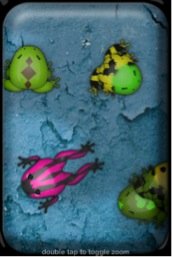 昨日からiPhoneアプリ「pocket frogs」に夢中になってカエルを色々な模様と色どうしで交配させまくってたら、カエルの模様が気持ち悪くてどうしようもない。