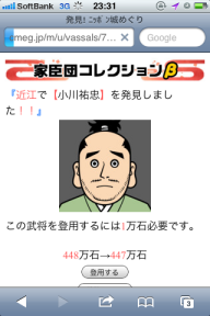 そして、ケータイゲームにおいては、手持ち武将に森家を捜索しに近江に遣って、知らないおっさんを連れてこられた。