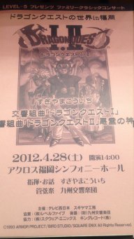 アクロス福岡で開催された交響組曲『ドラゴンクエストⅠⅡ』コンサートに夫と一緒に行ってきた。