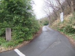 鳥打峠に至る道と供養塔(左の石)