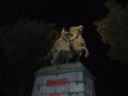 菊池武光公像:ライトアップのキレイさが伝わってくるだろうか。