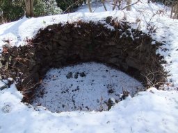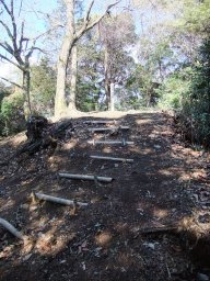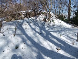 | 石積みが高崎山城の櫓台と思えば… | なんか穴があいてる。 |