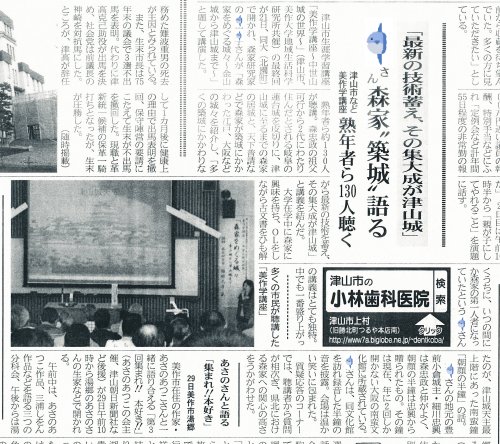 ところで話は180度変わるが、新聞に先日21日の私の講座の模様が掲載されたようで、津山の方から記事データをいただいた。