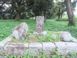 ■島津義久・義弘・歳久・家久の誕生石(四角い囲みの中の、手前に無造作に転がってる石4つ。)