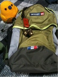 店員さんに「大きくないですよ。」と言われ、「これは15リットル入るリュックです。」と、リュックの大きさをリットルで語られつつ(中に水を注いで測るの?)、よいのをみつくろってもらった。