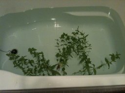 それにしても暑いので、庭になってるミントを摘んできて、ざっくり浮かべて今日はミント風呂にした。庭っていっても我が家の庭ではない。1階に勝手に増殖しまくっているのをゲトしたのだけど。