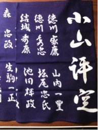 福岡の知人の運転で熊本空港まで関西のお城仲間をお迎えにあがった。彼らに色々とお土産をいただいてしまったが、その中には森商店のお菓子あり(森家とは関係ありません)、戦国武将ペロティ(織田信長ペロティが輝いている!)あり、小山評定てぬぐい(森忠政の名前入り!)あり。